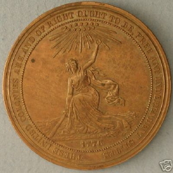 Reverse: In / Commemoration / of the / Centennial / of / Colonial / Independence / 1876; at top, around United States of America; bottom edge around, microscopic Pat. Nov. 3, 1874 H&L